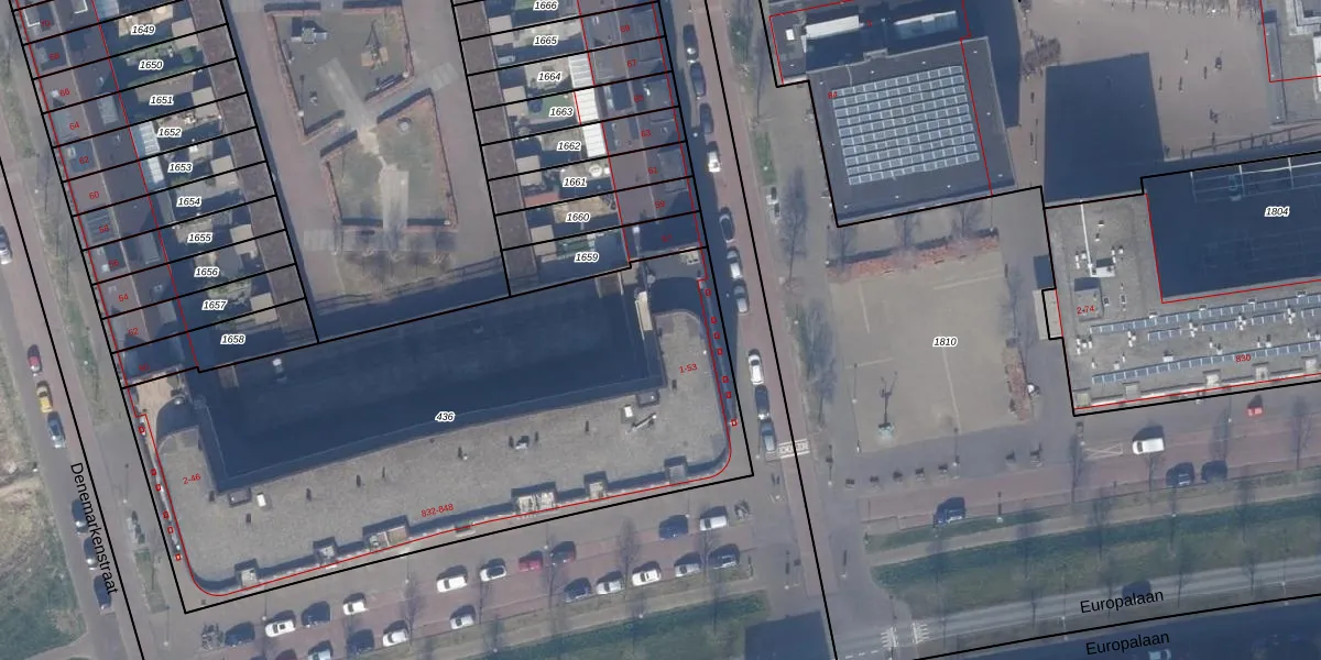 Het adres is gelegen op perceel 436 in de sectie W en de kadastrale gemeente Almere. De kadastrale aanduiding is aldus AMR04-W-436. Het perceel is 3108 m² groot. Dat is kleiner dan de gemiddelde perceeloppervlakte in Almere, dat op 3327,75 m² ligt. Het grootste perceel in de kadastrale gemeente is 32,12 km². Het kleinste perceel heeft een oppervlakte van 0 m². Op het perceel liggen in totaal 59 adressen. In de Basisregistratie Kadaster (BRK) werden de grenzen van het perceel geregistreerd op 17-10-2013.