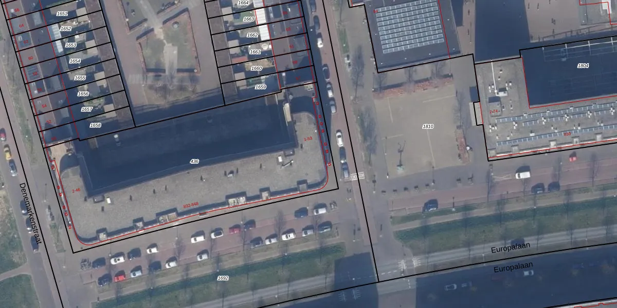 Het adres is gelegen op perceel 436 in de sectie W en de kadastrale gemeente Almere. De kadastrale aanduiding is aldus AMR04-W-436. Het perceel is 3108 m² groot. Dat is kleiner dan de gemiddelde perceeloppervlakte in Almere, dat op 3328,15 m² ligt. Het grootste perceel in de kadastrale gemeente is 32,12 km². Het kleinste perceel heeft een oppervlakte van 0 m². Op het perceel liggen in totaal 59 adressen. De huidige grenzen van het perceel zijn digitaal in de Basisregistratie Kadaster (BRK) geregistreerd op 17-10-2013.