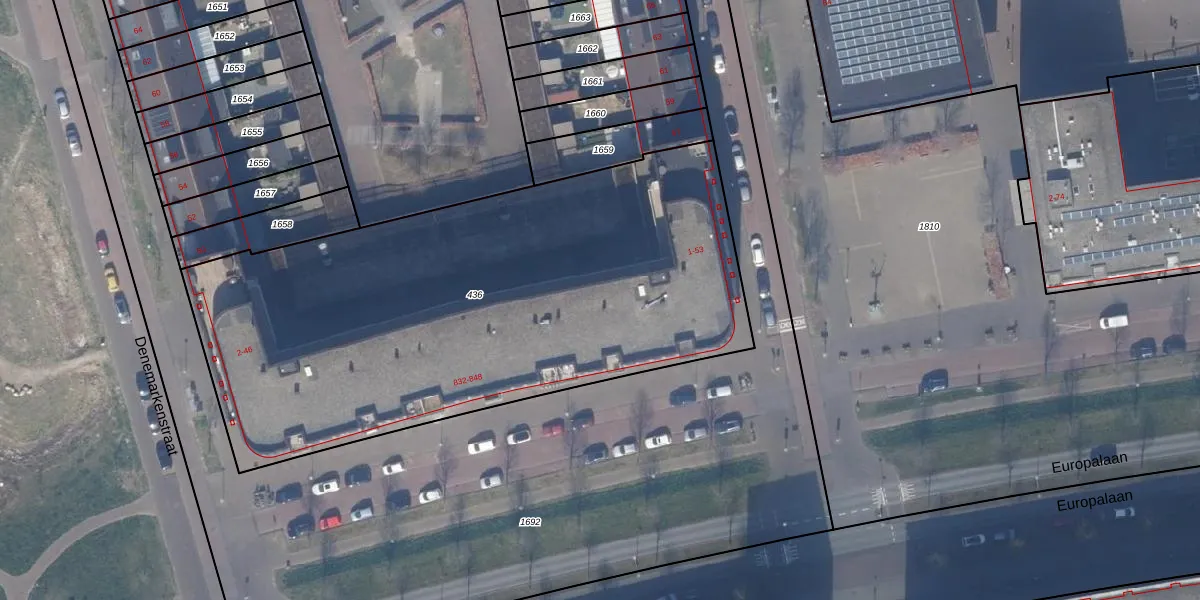 Het adres is gelegen op perceel 436 in de sectie W en de kadastrale gemeente Almere. De kadastrale aanduiding is aldus AMR04-W-436. Het perceel is 3108 m² groot. Dat is kleiner dan de gemiddelde perceeloppervlakte in Almere, dat op 3328,33 m² ligt. Het grootste perceel in de kadastrale gemeente is 32,12 km². Het kleinste perceel heeft een oppervlakte van 0 m². Op het perceel liggen in totaal 59 adressen. In de Basisregistratie Kadaster (BRK) werden de grenzen van het perceel geregistreerd op 17-10-2013.