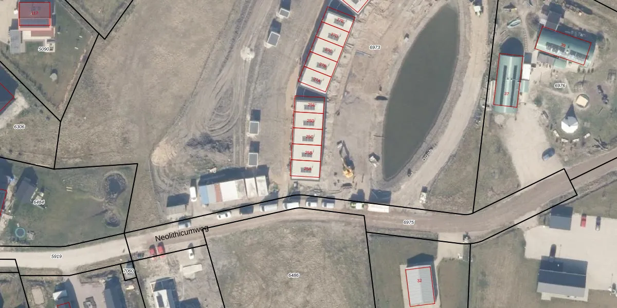 Het perceel waarop Neolithicumweg 25-B staat heeft een oppervlakte van 1,6 ha. Dit is een zeer groot perceel. De perceeloppervlakte wordt geregistreerd door het Kadaster. Gedetailleerde informatie over de maten van dit perceel kunt u vinden in het rapport Kadastrale kaart met maatvoering van Neolithicumweg 25-B.