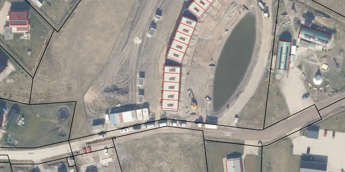 Het perceel waarop Neolithicumweg 25-C staat heeft een oppervlakte van 1,6 ha. Dit is een zeer groot perceel. De perceeloppervlakte wordt geregistreerd door het Kadaster. Gedetailleerde informatie over de maten van dit perceel kunt u vinden in het rapport Kadastrale kaart met maatvoering van Neolithicumweg 25-C.