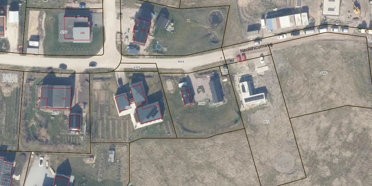 Het perceel waarop Neolithicumweg 8 staat heeft een oppervlakte van 1285 m². Dit is een zeer groot perceel. De perceeloppervlakte wordt geregistreerd door het Kadaster. Gedetailleerde informatie over de maten van dit perceel kunt u vinden in het rapport Kadastrale kaart met maatvoering van Neolithicumweg 8.