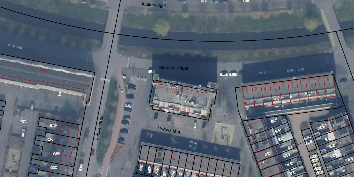 Neptunussingel 3 is gelegen op kadastraal perceel AMR04W314. Deze kadastrale aanduiding is uniek en wordt gebruikt door het Kadaster om eigendomsrechten en andere zakelijke rechten vast te leggen. Het perceel maakt onderdeel uit van de kadastrale gemeente Almere.