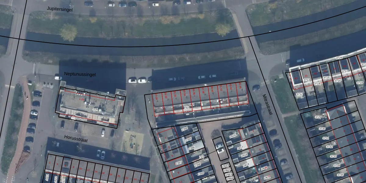Neptunussingel 33 is gelegen op kadastraal perceel AMR04W742. Deze kadastrale aanduiding is uniek en wordt gebruikt door het Kadaster om eigendomsrechten en andere zakelijke rechten vast te leggen. Het perceel maakt onderdeel uit van de kadastrale gemeente Almere.