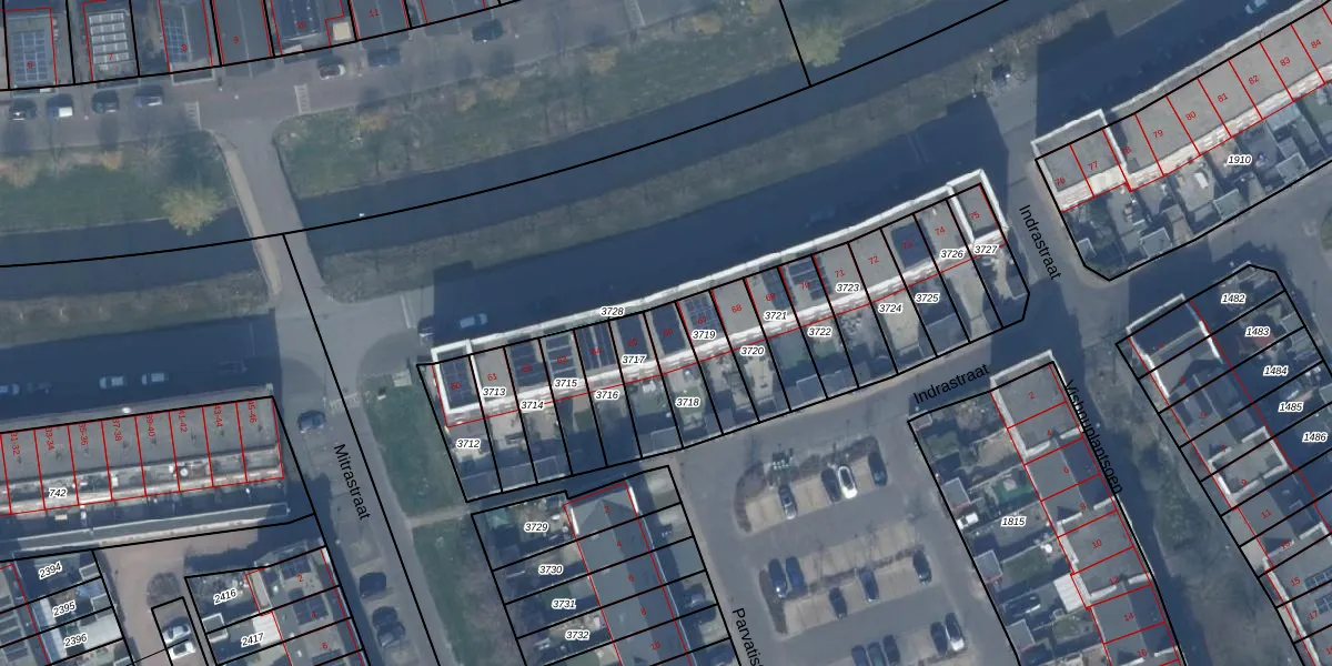 Het adres ligt op het perceel AMR04-W-3718, dat zich in de kadastrale gemeente Almere bevindt. Het perceel is 123 m² groot. Dat is kleiner dan de gemiddelde perceeloppervlakte in Almere, dat op 3328,15 m² ligt. Het grootste perceel in de kadastrale gemeente is 32,12 km². Het kleinste perceel heeft een oppervlakte van 0 m². Op het perceel bevinden zich geen andere adressen. De huidige grenzen van het perceel zijn digitaal in de Basisregistratie Kadaster (BRK) geregistreerd op 19-04-2018.