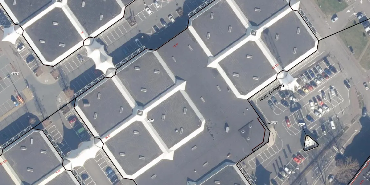 Het perceel waarop New Yorkweg 91 staat heeft een oppervlakte van 1,0 ha. Dit is een zeer groot perceel. De perceeloppervlakte wordt geregistreerd door het Kadaster. Gedetailleerde informatie over de maten van dit perceel kunt u vinden in het rapport Kadastrale kaart met maatvoering van New Yorkweg 91.