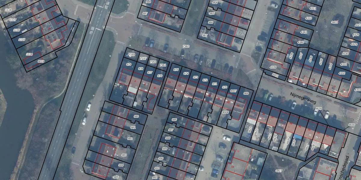 Het perceel waarop Nijmegenweg 12 staat heeft een oppervlakte van 142 m². Dit is een middelgroot perceel. De perceeloppervlakte wordt geregistreerd door het Kadaster. Gedetailleerde informatie over de maten van dit perceel kunt u vinden in het rapport Kadastrale kaart met maatvoering van Nijmegenweg 12.