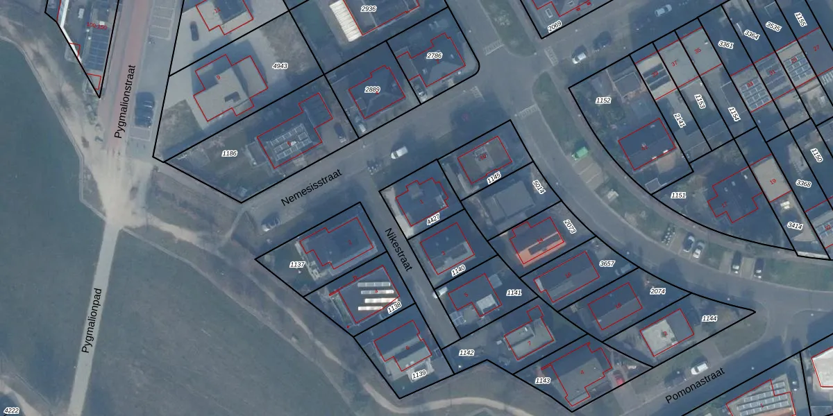 Het perceel waarop Nikestraat 1 staat heeft een oppervlakte van 214 m². Dit is een middelgroot perceel. De perceeloppervlakte wordt geregistreerd door het Kadaster. Gedetailleerde informatie over de maten van dit perceel kunt u vinden in het rapport Kadastrale kaart met maatvoering van Nikestraat 1.