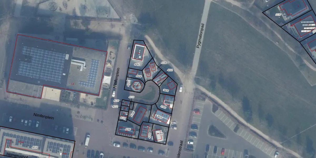 Het perceel waarop Nimfenplein 19 staat heeft een oppervlakte van 55 m². Dit is een klein perceel. De perceeloppervlakte wordt geregistreerd door het Kadaster. Gedetailleerde informatie over de maten van dit perceel kunt u vinden in het rapport Kadastrale kaart met maatvoering van Nimfenplein 19.