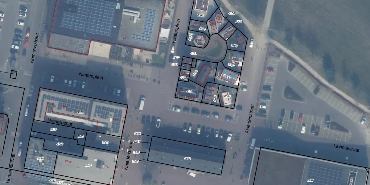 Nimfenplein 39 is gelegen op kadastraal perceel AMR04W4166. Deze kadastrale aanduiding is uniek en wordt gebruikt door het Kadaster om eigendomsrechten en andere zakelijke rechten vast te leggen. Het perceel maakt onderdeel uit van de kadastrale gemeente Almere.