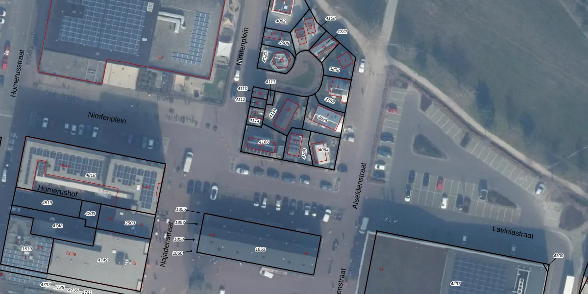 Het perceel waarop Nimfenplein 41 staat heeft een oppervlakte van 96 m². Dit is een klein perceel. De perceeloppervlakte wordt geregistreerd door het Kadaster. Gedetailleerde informatie over de maten van dit perceel kunt u vinden in het rapport Kadastrale kaart met maatvoering van Nimfenplein 41.