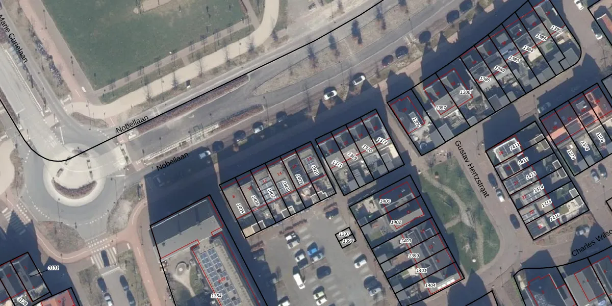Het perceel waarop Nobellaan 18 staat heeft een oppervlakte van 108 m². Dit is een middelgroot perceel. De perceeloppervlakte wordt geregistreerd door het Kadaster. Gedetailleerde informatie over de maten van dit perceel kunt u vinden in het rapport Kadastrale kaart met maatvoering van Nobellaan 18.