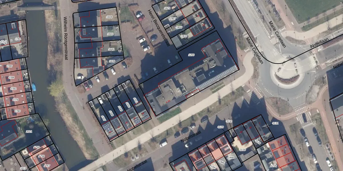 Het perceel waarop Nobelstraat 24 staat heeft een oppervlakte van 1298 m². Dit is een zeer groot perceel. De perceeloppervlakte wordt geregistreerd door het Kadaster. Gedetailleerde informatie over de maten van dit perceel kunt u vinden in het rapport Kadastrale kaart met maatvoering van Nobelstraat 24.