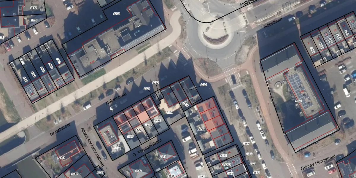 Gebruik de zoekbalk of klik op een perceel voor informatie over de adressen binnen dit perceel.