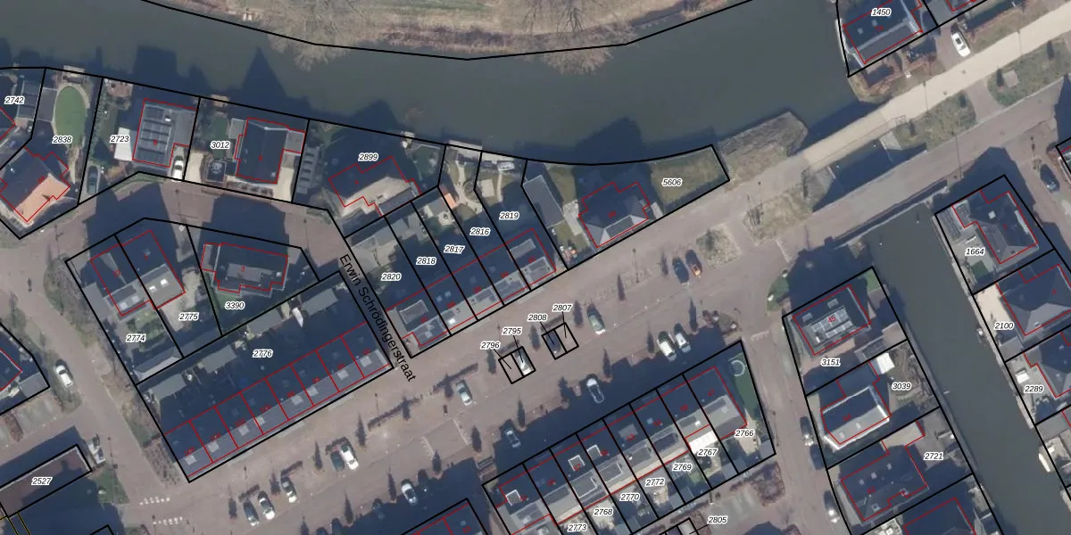 Gebruik de zoekbalk of klik op een perceel voor informatie over de adressen binnen dit perceel.