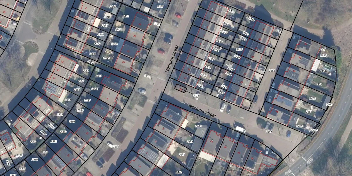 Nocturnestraat 19 is gelegen op kadastraal perceel AMR04Q2411. Deze kadastrale aanduiding is uniek en wordt gebruikt door het Kadaster om eigendomsrechten en andere zakelijke rechten vast te leggen. Het perceel maakt onderdeel uit van de kadastrale gemeente Almere.