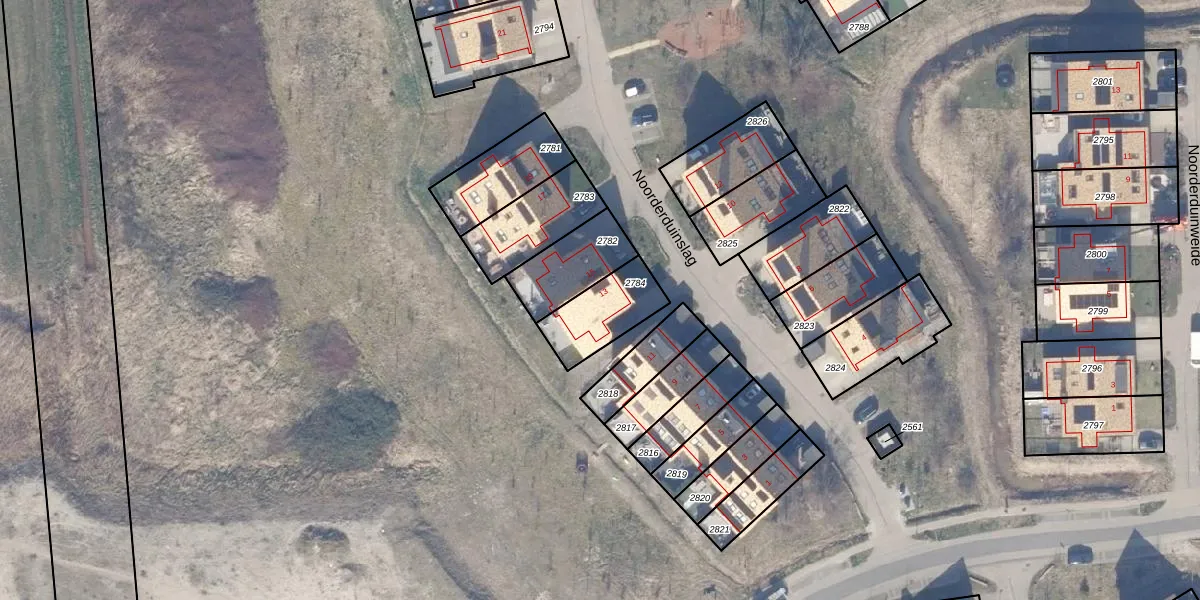 Gebruik de zoekbalk of klik op een perceel voor informatie over de adressen binnen dit perceel.