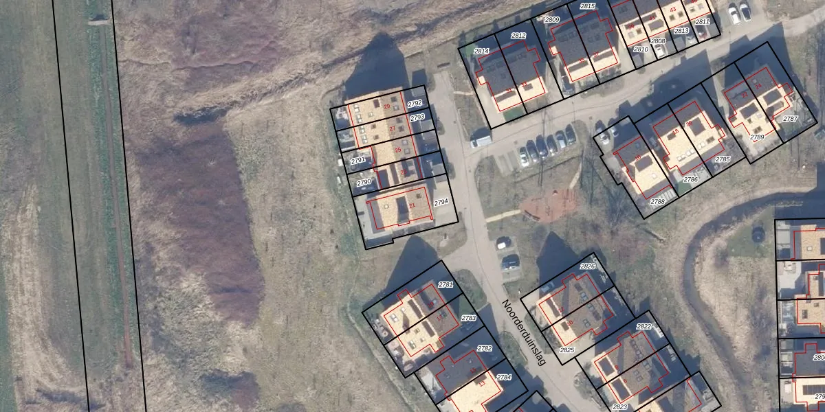 Het perceel waarop Noorderduinslag 21 staat heeft een oppervlakte van 293 m². Dit is een middelgroot perceel. De perceeloppervlakte wordt geregistreerd door het Kadaster. Gedetailleerde informatie over de maten van dit perceel kunt u vinden in het rapport Kadastrale kaart met maatvoering van Noorderduinslag 21.