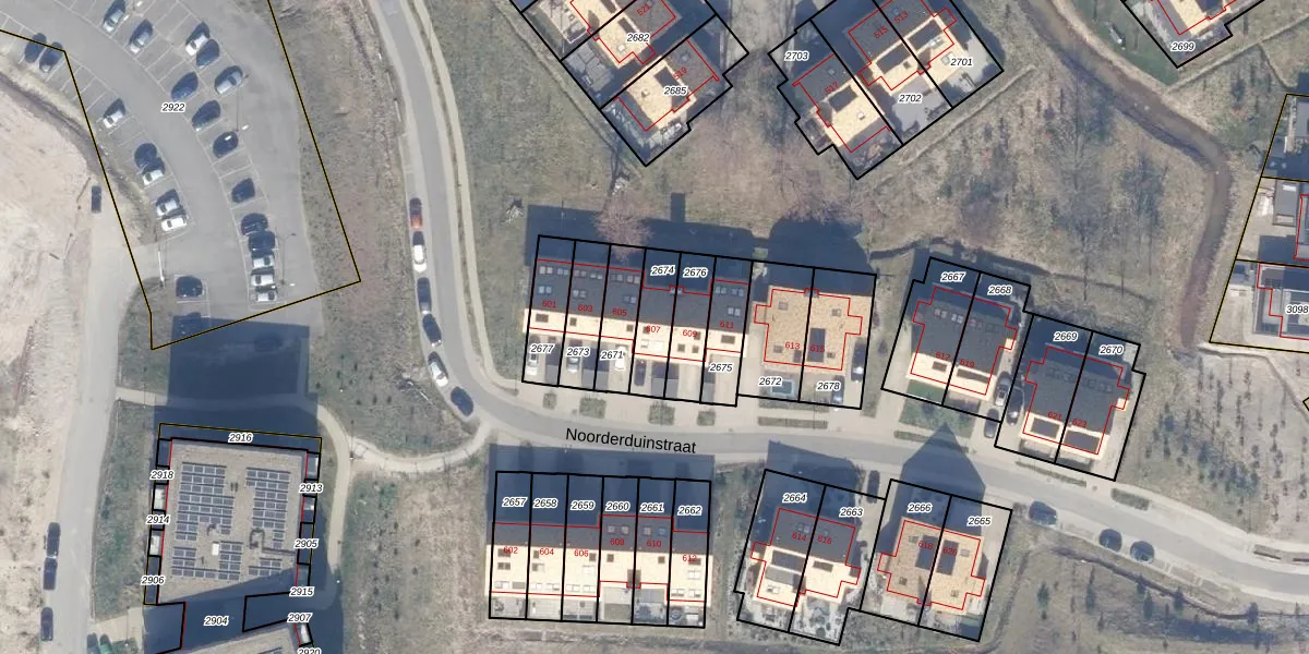 Noorderduinstraat 607 is gelegen op kadastraal perceel AMR04F2674. Deze kadastrale aanduiding is uniek en wordt gebruikt door het Kadaster om eigendomsrechten en andere zakelijke rechten vast te leggen. Het perceel maakt onderdeel uit van de kadastrale gemeente Almere.