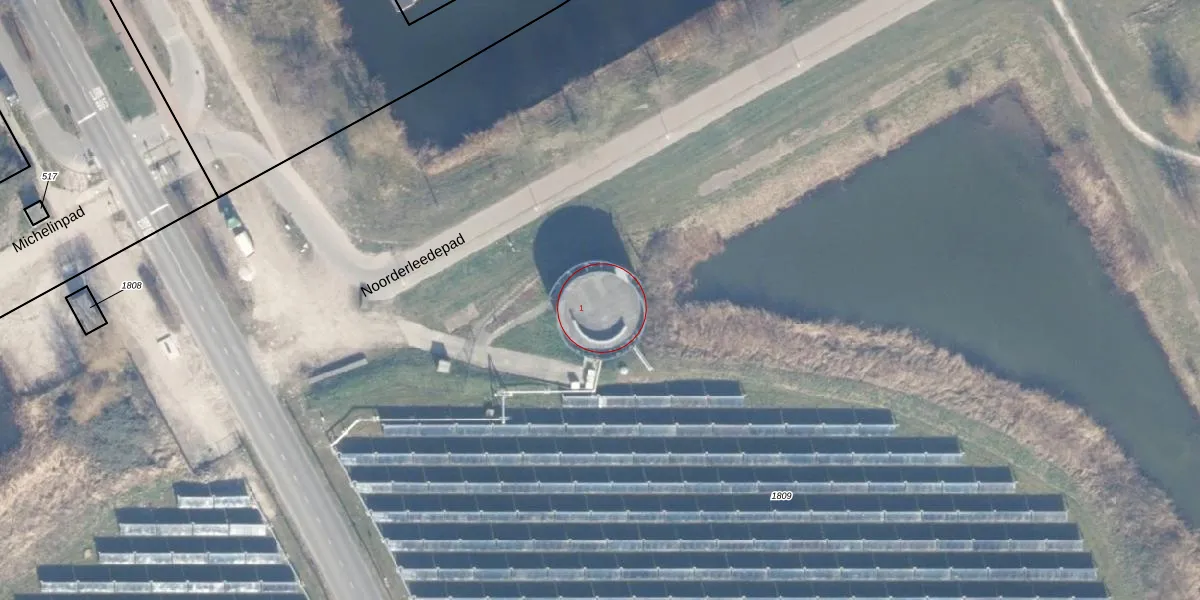 Het perceel waarop Noorderleedepad 1 staat heeft een oppervlakte van 7,9 ha. Dit is een zeer groot perceel. De perceeloppervlakte wordt geregistreerd door het Kadaster. Gedetailleerde informatie over de maten van dit perceel kunt u vinden in het rapport Kadastrale kaart met maatvoering van Noorderleedepad 1.