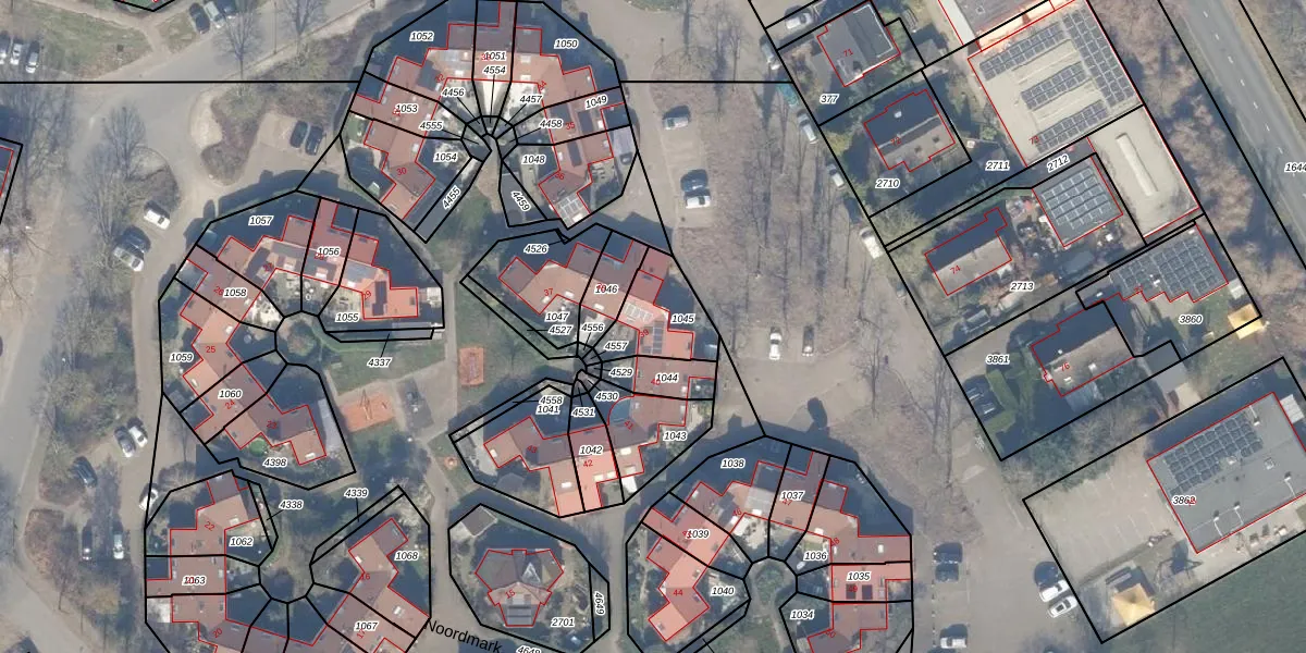 Het perceel waarop Noordmark 39 staat heeft een oppervlakte van 200 m². Dit is een middelgroot perceel. De perceeloppervlakte wordt geregistreerd door het Kadaster. Gedetailleerde informatie over de maten van dit perceel kunt u vinden in het rapport Kadastrale kaart met maatvoering van Noordmark 39.