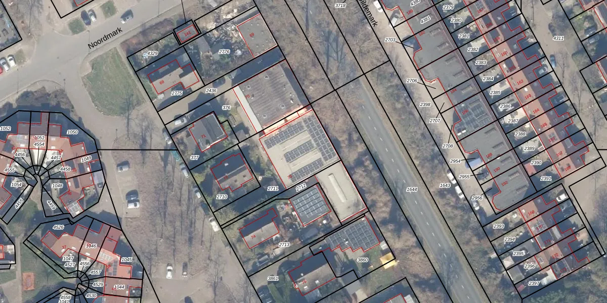 Het perceel waarop Noordmark 73 staat heeft een oppervlakte van 668 m². Dit is een groot perceel. De perceeloppervlakte wordt geregistreerd door het Kadaster. Gedetailleerde informatie over de maten van dit perceel kunt u vinden in het rapport Kadastrale kaart met maatvoering van Noordmark 73.
