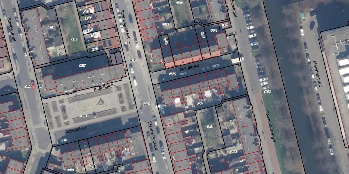 Het perceel waarop Norgstraat 11 staat heeft een oppervlakte van 1893 m². Dit is een zeer groot perceel. De perceeloppervlakte wordt geregistreerd door het Kadaster. Gedetailleerde informatie over de maten van dit perceel kunt u vinden in het rapport Kadastrale kaart met maatvoering van Norgstraat 11.