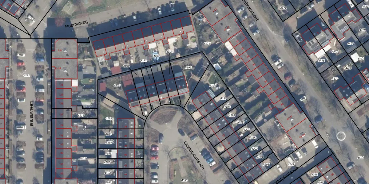 Gebruik de zoekbalk of klik op een perceel voor informatie over de adressen binnen dit perceel.