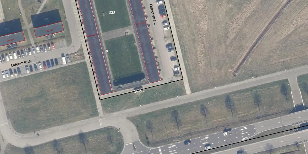 Odeonstraat 1090 is gelegen op kadastraal perceel AMR04U6504. Deze kadastrale aanduiding is uniek en wordt gebruikt door het Kadaster om eigendomsrechten en andere zakelijke rechten vast te leggen. Het perceel maakt onderdeel uit van de kadastrale gemeente Almere.
