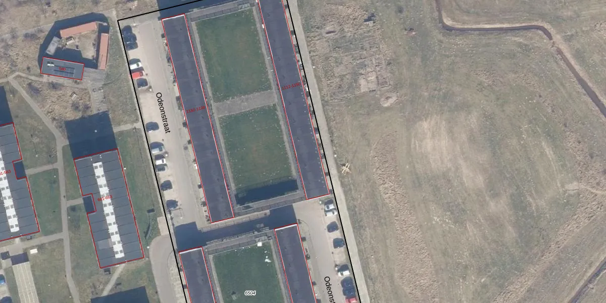 Het perceel waarop Odeonstraat 1116 staat heeft een oppervlakte van 8430 m². Dit is een zeer groot perceel. De perceeloppervlakte wordt geregistreerd door het Kadaster. Gedetailleerde informatie over de maten van dit perceel kunt u vinden in het rapport Kadastrale kaart met maatvoering van Odeonstraat 1116.