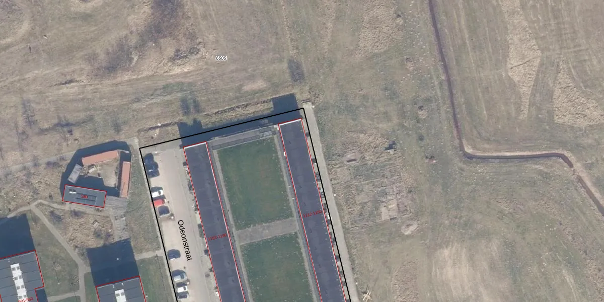 Het perceel waarop Odeonstraat 1148 staat heeft een oppervlakte van 8430 m². Dit is een zeer groot perceel. De perceeloppervlakte wordt geregistreerd door het Kadaster. Gedetailleerde informatie over de maten van dit perceel kunt u vinden in het rapport Kadastrale kaart met maatvoering van Odeonstraat 1148.