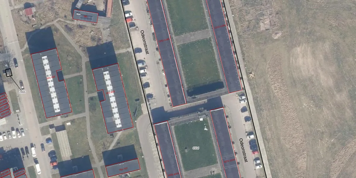 Het perceel waarop Odeonstraat 1154 staat heeft een oppervlakte van 8430 m². Dit is een zeer groot perceel. De perceeloppervlakte wordt geregistreerd door het Kadaster. Gedetailleerde informatie over de maten van dit perceel kunt u vinden in het rapport Kadastrale kaart met maatvoering van Odeonstraat 1154.