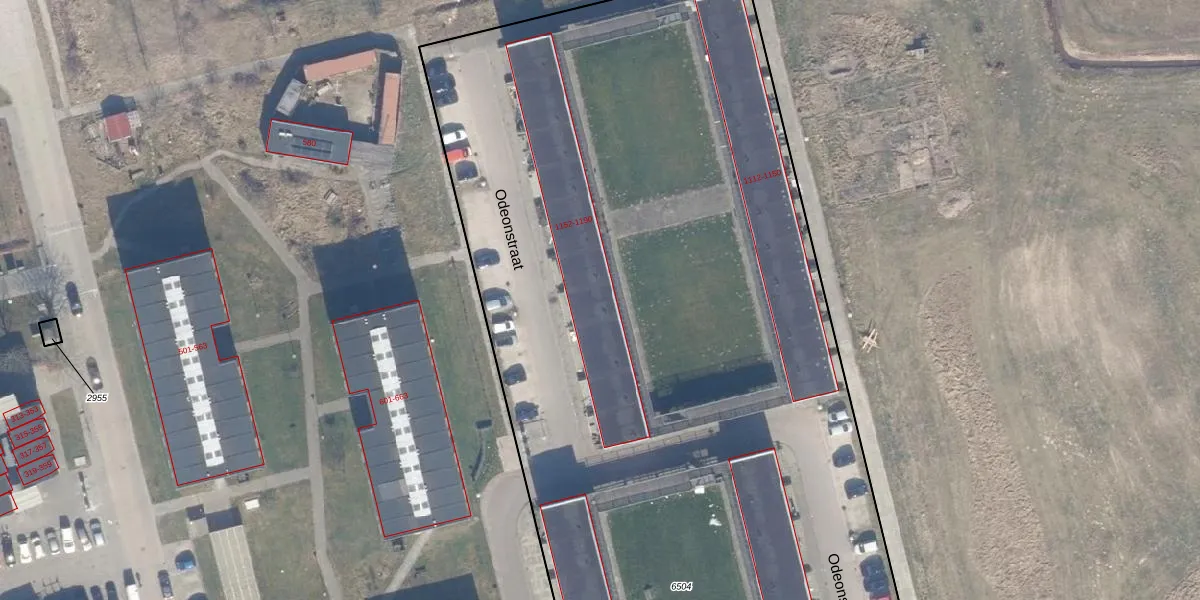 Het perceel waarop Odeonstraat 1158 staat heeft een oppervlakte van 8430 m². Dit is een zeer groot perceel. De perceeloppervlakte wordt geregistreerd door het Kadaster. Gedetailleerde informatie over de maten van dit perceel kunt u vinden in het rapport Kadastrale kaart met maatvoering van Odeonstraat 1158.