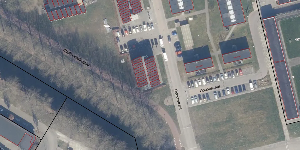 Het perceel waarop Odeonstraat 117 staat heeft een oppervlakte van 12,7 ha. Dit is een zeer groot perceel. De perceeloppervlakte wordt geregistreerd door het Kadaster. Gedetailleerde informatie over de maten van dit perceel kunt u vinden in het rapport Kadastrale kaart met maatvoering van Odeonstraat 117.