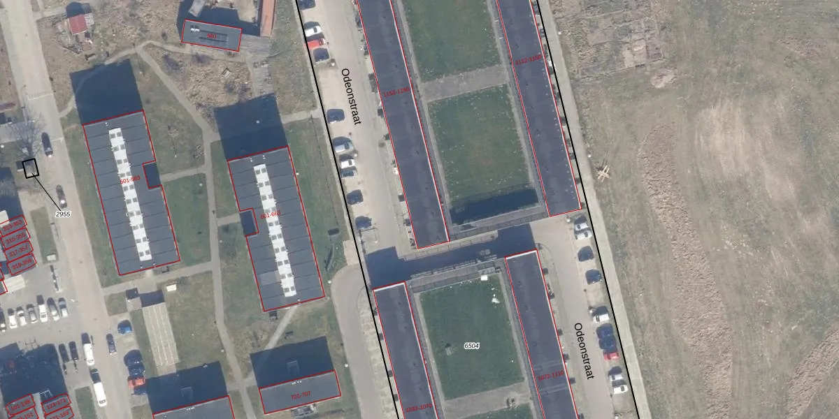 Het perceel waarop Odeonstraat 1174 staat heeft een oppervlakte van 8430 m². Dit is een zeer groot perceel. De perceeloppervlakte wordt geregistreerd door het Kadaster. Gedetailleerde informatie over de maten van dit perceel kunt u vinden in het rapport Kadastrale kaart met maatvoering van Odeonstraat 1174.