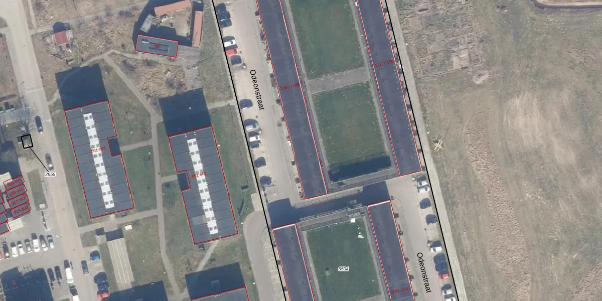 Het perceel waarop Odeonstraat 1176 staat heeft een oppervlakte van 8430 m². Dit is een zeer groot perceel. De perceeloppervlakte wordt geregistreerd door het Kadaster. Gedetailleerde informatie over de maten van dit perceel kunt u vinden in het rapport Kadastrale kaart met maatvoering van Odeonstraat 1176.