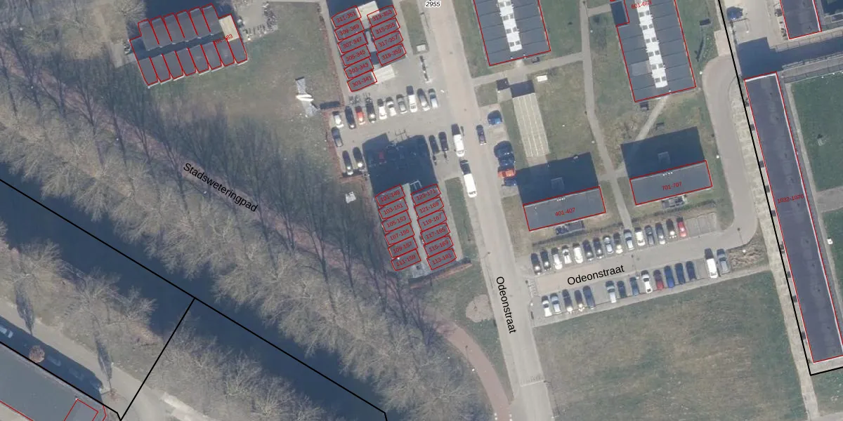 Het perceel waarop Odeonstraat 121 staat heeft een oppervlakte van 12,7 ha. Dit is een zeer groot perceel. De perceeloppervlakte wordt geregistreerd door het Kadaster. Gedetailleerde informatie over de maten van dit perceel kunt u vinden in het rapport Kadastrale kaart met maatvoering van Odeonstraat 121.
