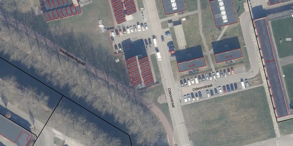 Het perceel waarop Odeonstraat 141 staat heeft een oppervlakte van 12,7 ha. Dit is een zeer groot perceel. De perceeloppervlakte wordt geregistreerd door het Kadaster. Gedetailleerde informatie over de maten van dit perceel kunt u vinden in het rapport Kadastrale kaart met maatvoering van Odeonstraat 141.