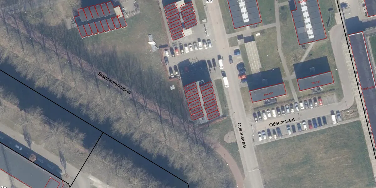 Het perceel waarop Odeonstraat 151 staat heeft een oppervlakte van 12,7 ha. Dit is een zeer groot perceel. De perceeloppervlakte wordt geregistreerd door het Kadaster. Gedetailleerde informatie over de maten van dit perceel kunt u vinden in het rapport Kadastrale kaart met maatvoering van Odeonstraat 151.