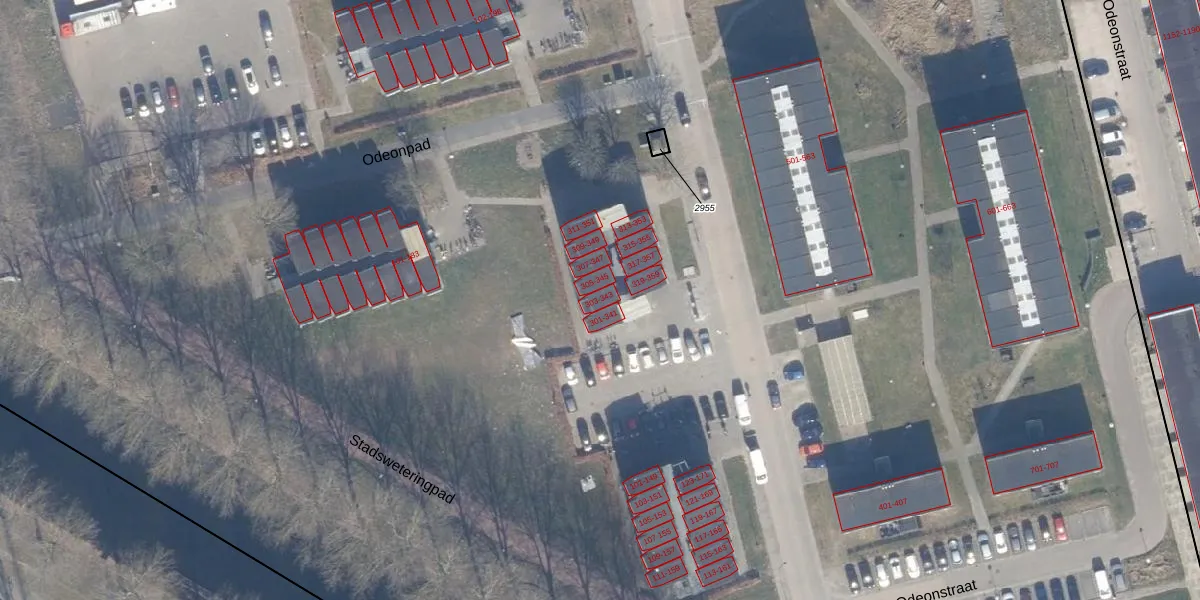 Het perceel waarop Odeonstraat 323 staat heeft een oppervlakte van 12,7 ha. Dit is een zeer groot perceel. De perceeloppervlakte wordt geregistreerd door het Kadaster. Gedetailleerde informatie over de maten van dit perceel kunt u vinden in het rapport Kadastrale kaart met maatvoering van Odeonstraat 323.