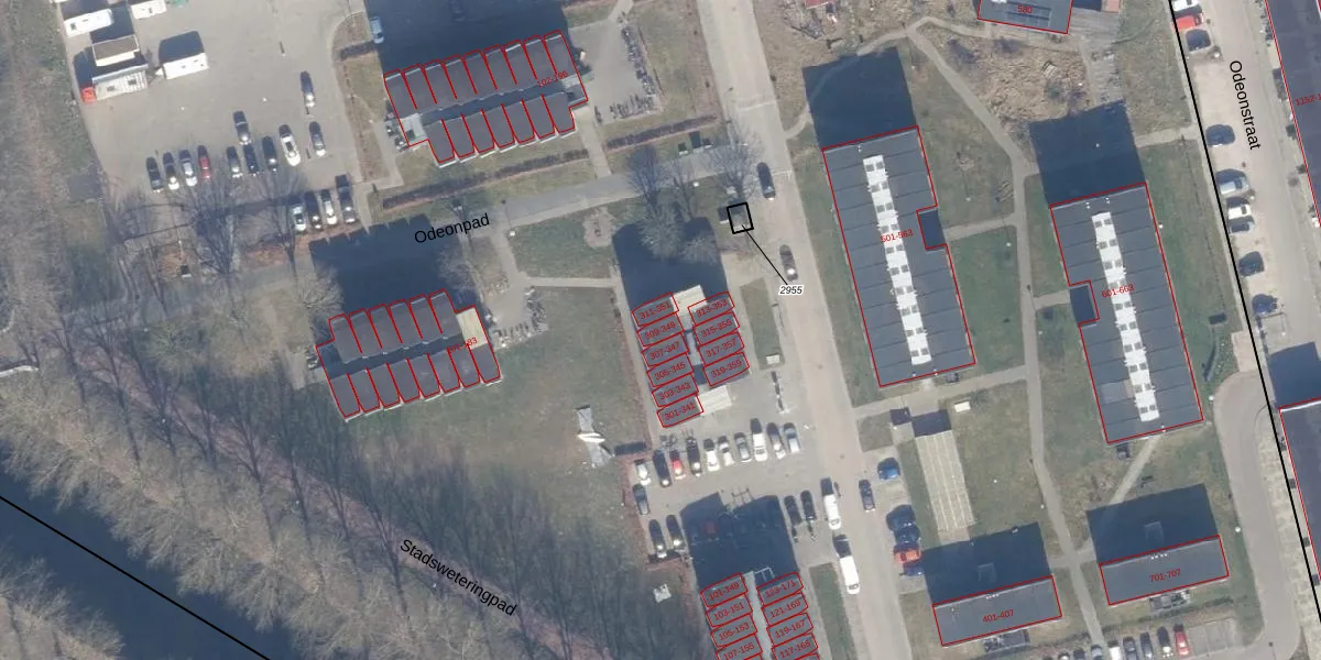 Het perceel waarop Odeonstraat 329 staat heeft een oppervlakte van 12,7 ha. Dit is een zeer groot perceel. De perceeloppervlakte wordt geregistreerd door het Kadaster. Gedetailleerde informatie over de maten van dit perceel kunt u vinden in het rapport Kadastrale kaart met maatvoering van Odeonstraat 329.