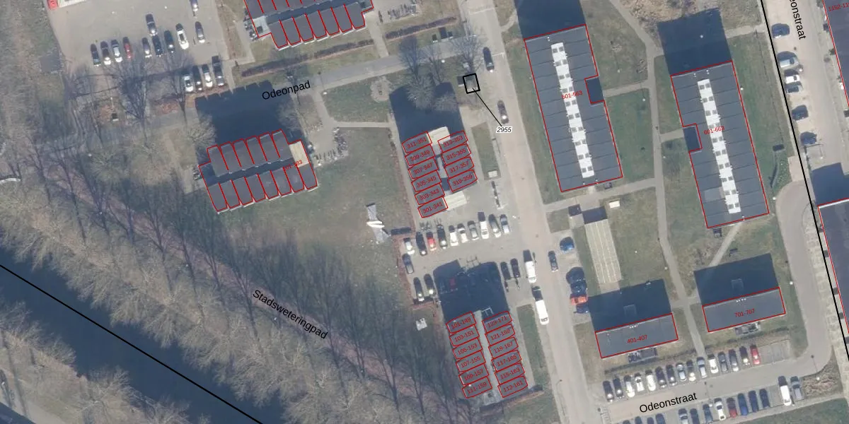 Het perceel waarop Odeonstraat 341 staat heeft een oppervlakte van 12,7 ha. Dit is een zeer groot perceel. De perceeloppervlakte wordt geregistreerd door het Kadaster. Gedetailleerde informatie over de maten van dit perceel kunt u vinden in het rapport Kadastrale kaart met maatvoering van Odeonstraat 341.