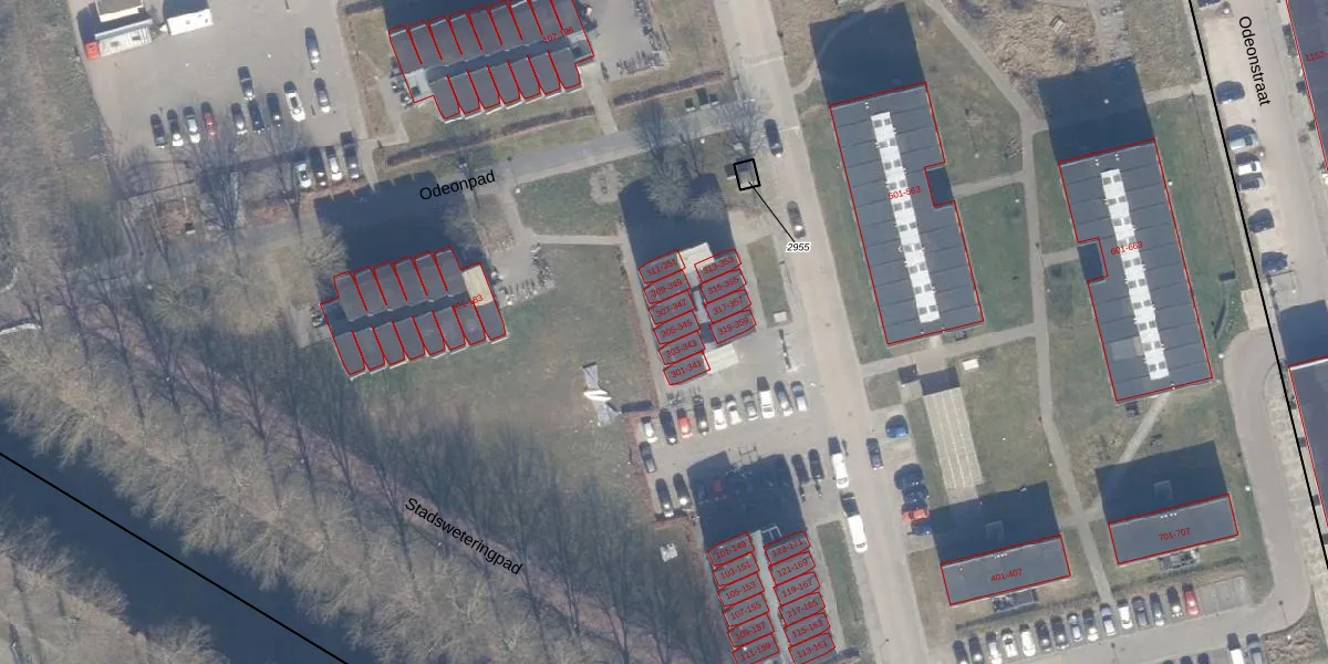 Het perceel waarop Odeonstraat 345 staat heeft een oppervlakte van 12,7 ha. Dit is een zeer groot perceel. De perceeloppervlakte wordt geregistreerd door het Kadaster. Gedetailleerde informatie over de maten van dit perceel kunt u vinden in het rapport Kadastrale kaart met maatvoering van Odeonstraat 345.