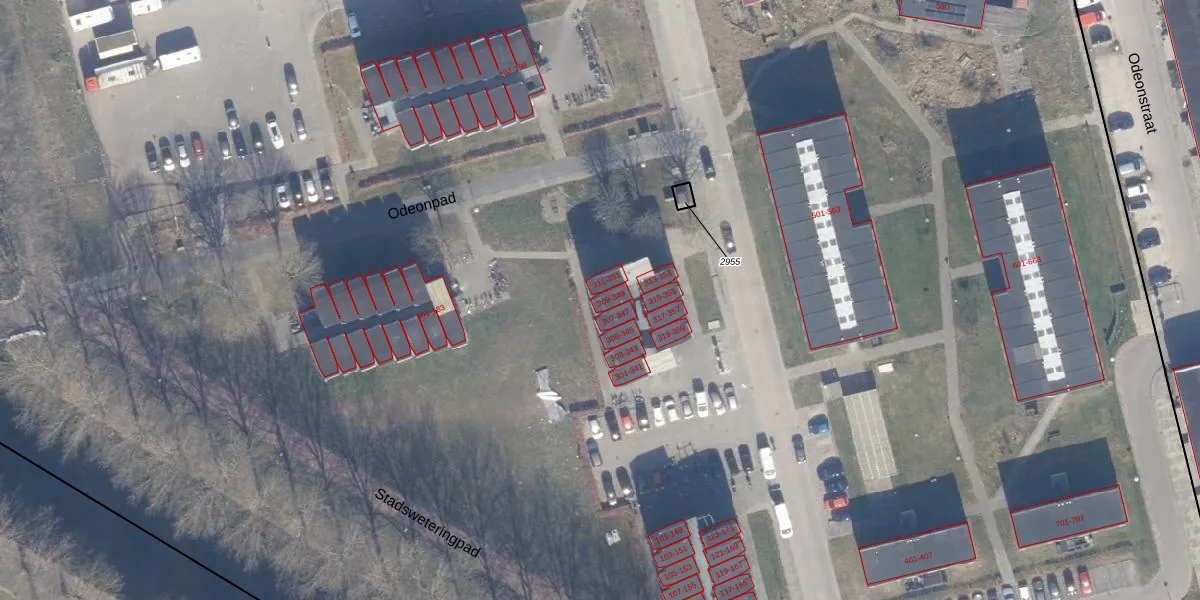 Het perceel waarop Odeonstraat 349 staat heeft een oppervlakte van 12,7 ha. Dit is een zeer groot perceel. De perceeloppervlakte wordt geregistreerd door het Kadaster. Gedetailleerde informatie over de maten van dit perceel kunt u vinden in het rapport Kadastrale kaart met maatvoering van Odeonstraat 349.