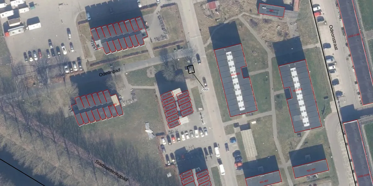 Het perceel waarop Odeonstraat 353 staat heeft een oppervlakte van 12,7 ha. Dit is een zeer groot perceel. De perceeloppervlakte wordt geregistreerd door het Kadaster. Gedetailleerde informatie over de maten van dit perceel kunt u vinden in het rapport Kadastrale kaart met maatvoering van Odeonstraat 353.