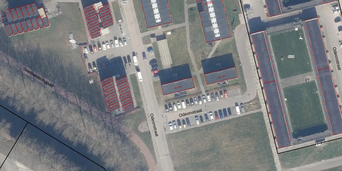 Het perceel waarop Odeonstraat 401 staat heeft een oppervlakte van 12,7 ha. Dit is een zeer groot perceel. De perceeloppervlakte wordt geregistreerd door het Kadaster. Gedetailleerde informatie over de maten van dit perceel kunt u vinden in het rapport Kadastrale kaart met maatvoering van Odeonstraat 401.