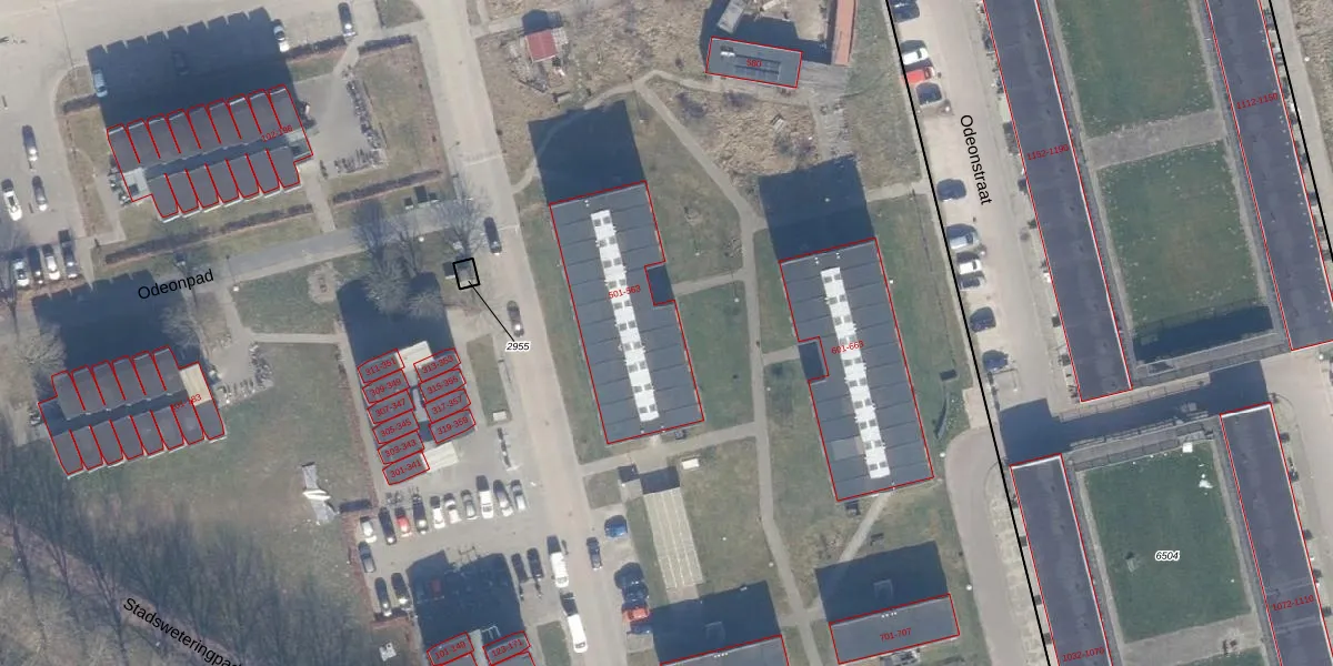 Het perceel waarop Odeonstraat 501 staat heeft een oppervlakte van 12,7 ha. Dit is een zeer groot perceel. De perceeloppervlakte wordt geregistreerd door het Kadaster. Gedetailleerde informatie over de maten van dit perceel kunt u vinden in het rapport Kadastrale kaart met maatvoering van Odeonstraat 501.