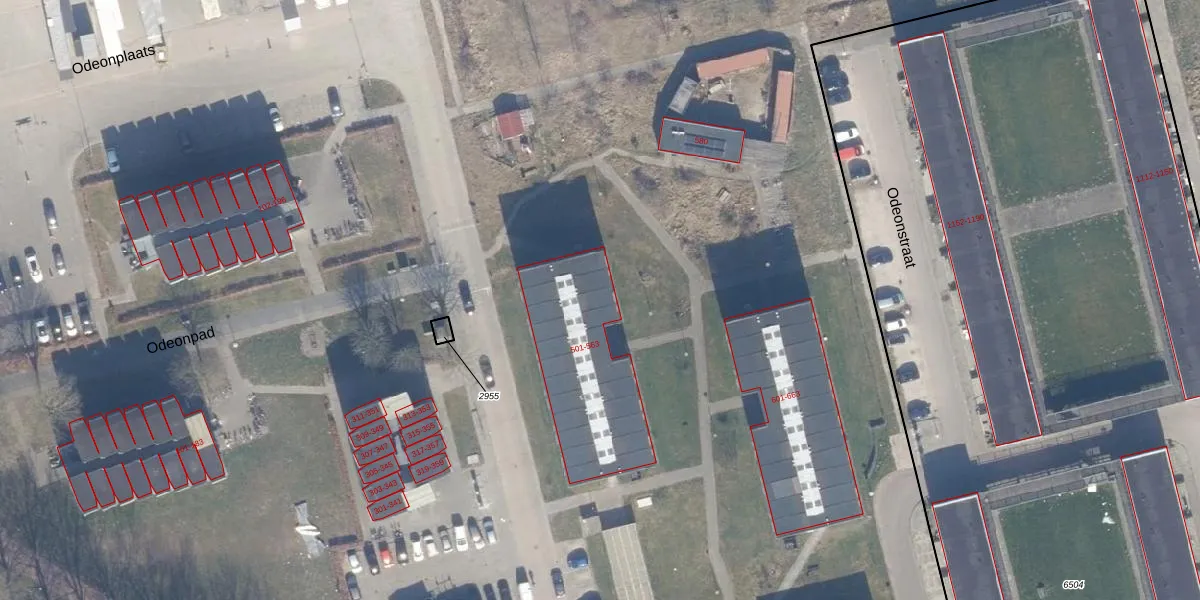 Odeonstraat 519 is gelegen op kadastraal perceel AMR04U6505. Deze kadastrale aanduiding is uniek en wordt gebruikt door het Kadaster om eigendomsrechten en andere zakelijke rechten vast te leggen. Het perceel maakt onderdeel uit van de kadastrale gemeente Almere.