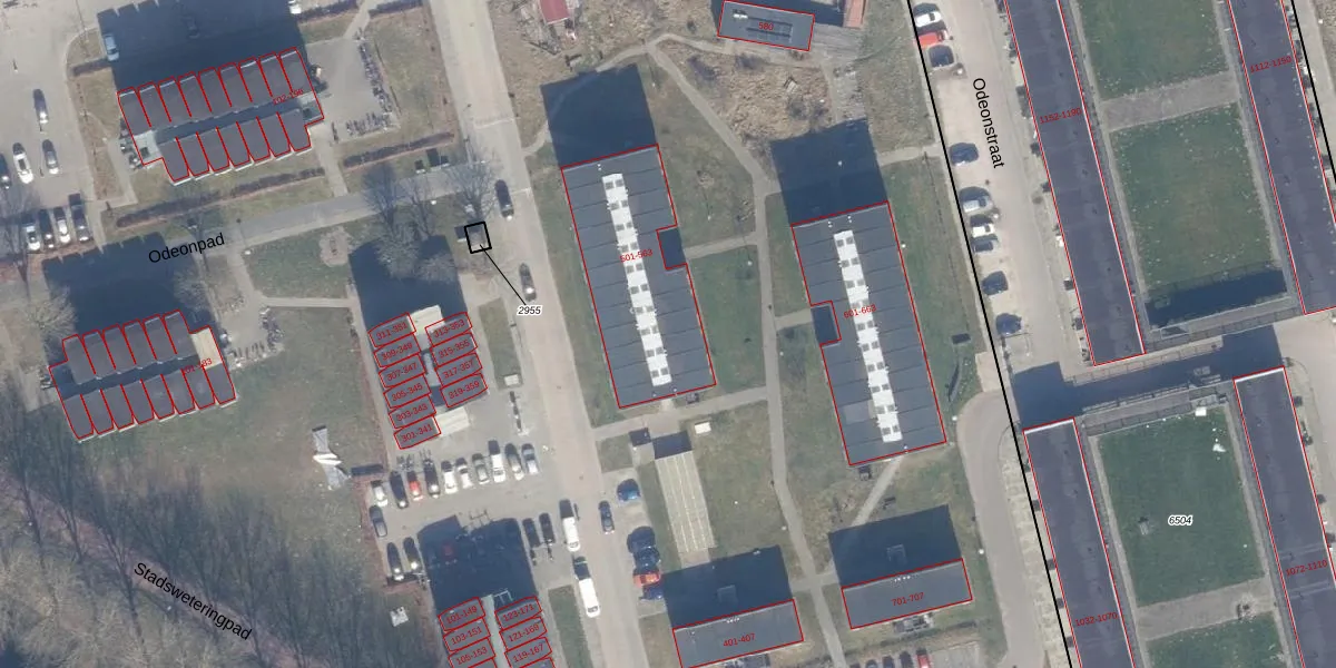Het perceel waarop Odeonstraat 523 staat heeft een oppervlakte van 12,7 ha. Dit is een zeer groot perceel. De perceeloppervlakte wordt geregistreerd door het Kadaster. Gedetailleerde informatie over de maten van dit perceel kunt u vinden in het rapport Kadastrale kaart met maatvoering van Odeonstraat 523.