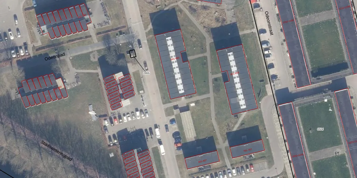 Het perceel waarop Odeonstraat 549 staat heeft een oppervlakte van 12,7 ha. Dit is een zeer groot perceel. De perceeloppervlakte wordt geregistreerd door het Kadaster. Gedetailleerde informatie over de maten van dit perceel kunt u vinden in het rapport Kadastrale kaart met maatvoering van Odeonstraat 549.